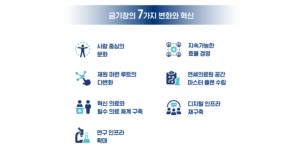 이어 ▲병원 운영지원(전임 교원 확대, 자율권 부여 등) ▲교수 복지 강화(교수동 신설, 전공의 수급 등) ▲연구 경쟁력 강화 지원(연구 공간 확보 등) 등도 추진한다.
