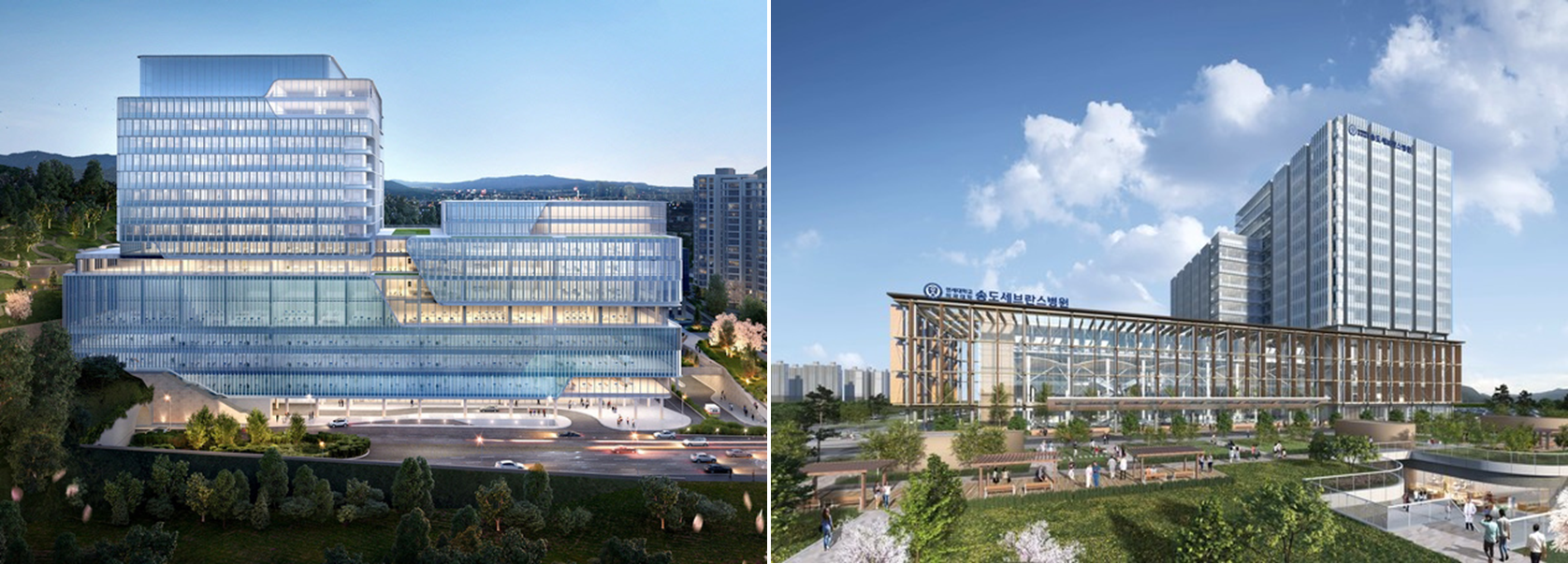 강남세브란스병원(좌)과 송도세브란스병원 조감도.