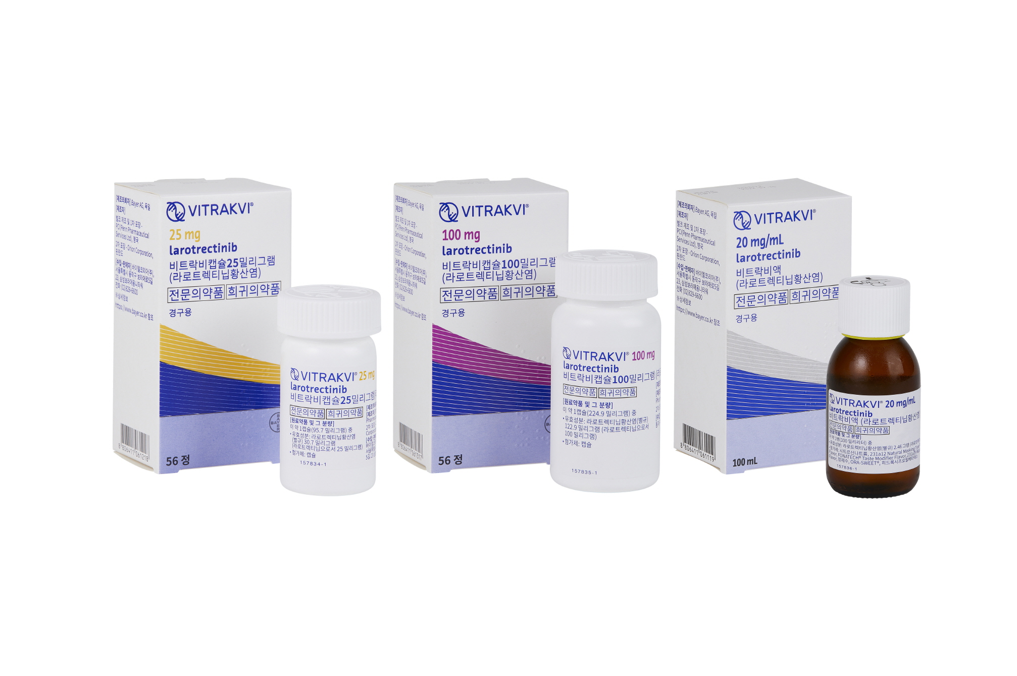 영아 섬유육종을 신규 진단받은 소아환자 대상으로 라로트렉티닙을 평가하는 연구에선 18명 중 17명(94%)이 입증된 객관적 반응률을 보였다. 실제 1명은 완전관해, 16명은 부분관해에 도달했다.
