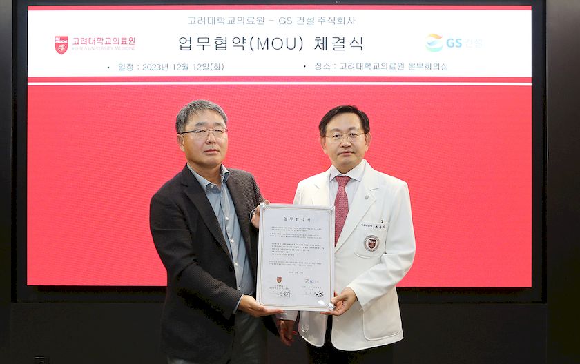 [데일리메디 박대진기자] 고려대학교의료원(의무부총장 겸 의료원장 윤을식)은 지난 12일 GS건설과 사회적 가치 실현을 위한 업무협약을 체결했다.