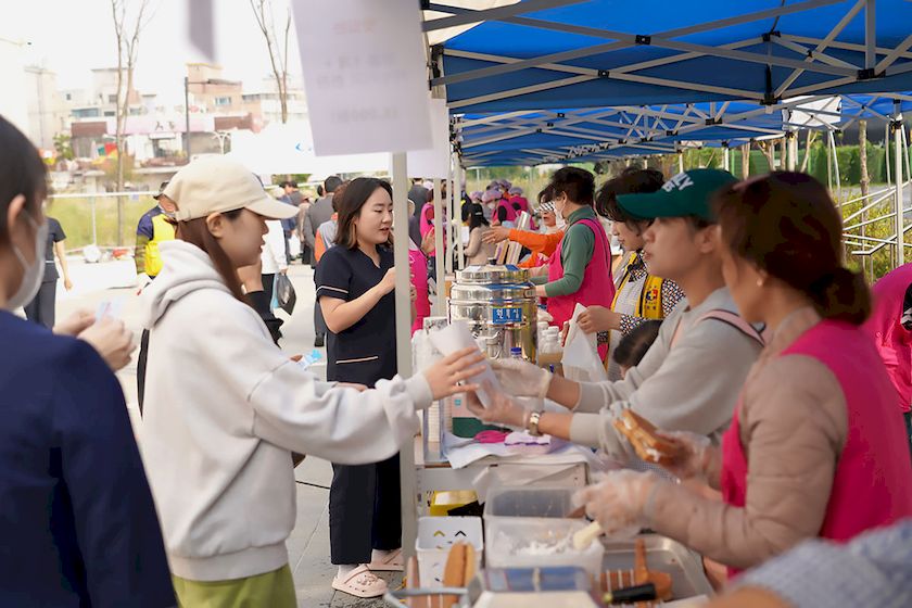 호스피스 자원봉사자들이 정성스레 준비한 떡볶이와 김밥, 어묵 등 다양한 먹거리와 멸치, 미역, 황태포 등 다양한 품목들을 마련해 내원객과 환자, 지역주민들의 눈과 입을 즐겁게 했다.