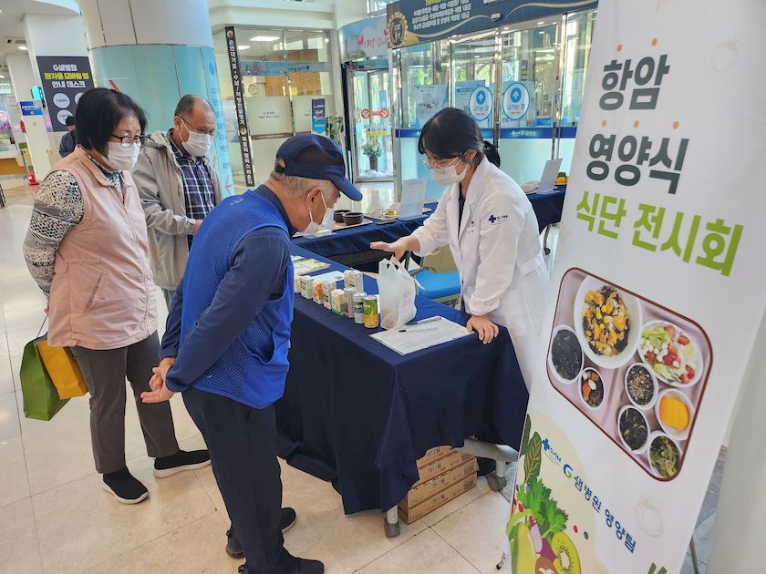특히 항암식에 대한 정확한 정보와 올바른 가이드라인을 제시하고자 전시회에 참관한 내원객 및 환자, 보호자를 대상으로 영양사가 직접 교육을 실시했다.