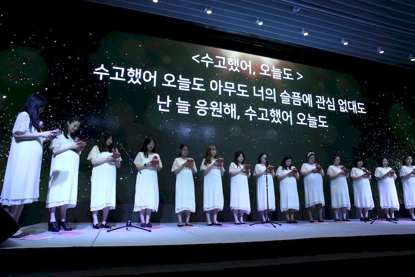 17명의 임산부로 구성된 ‘아이&I 임산부 합창단’은 산모와 아이를 위한 마련된 병원 내 문화센터인 마더비문화원에서 이번 공연을 위해 ‘아로하’ 등의 노래를 연습해왔다.