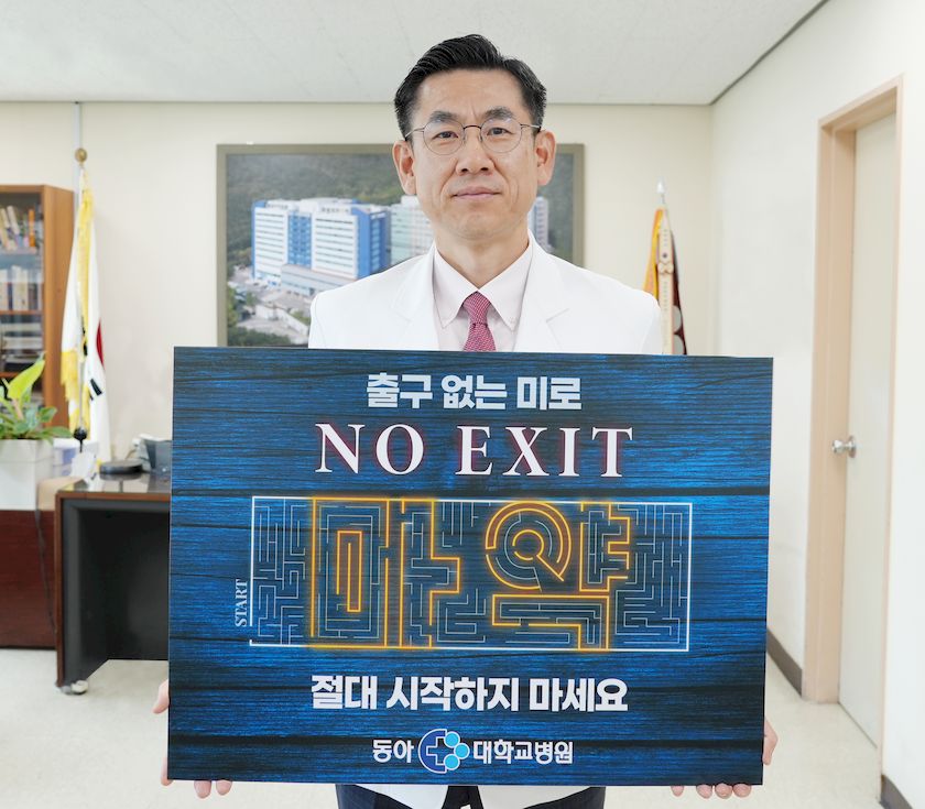 [데일리메디 박대진기자] 동아대학교병원 안희배 병원장이 최근 마약 예방 릴레이 캠페인 ‘출구 없는 미로(NO EXIT), 마약 절대 시작하지 마세요’에 참여했다.