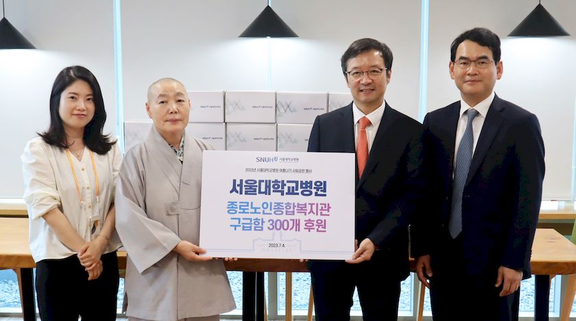 서울대병원은 최근 ‘종로노인종합복지관’과 ‘원각사 노인무료급식소’에 후원물품을 전달했다.