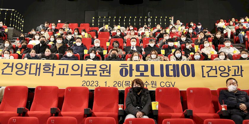 [데일리메디 박대진기자] 건양대학교병원(의료원장 배장호)은 최근 대전 가수원 CGV에서 교직원 단체 영화관람 이벤트인 ‘건양과 한 편’ 행사를 개최했다.
