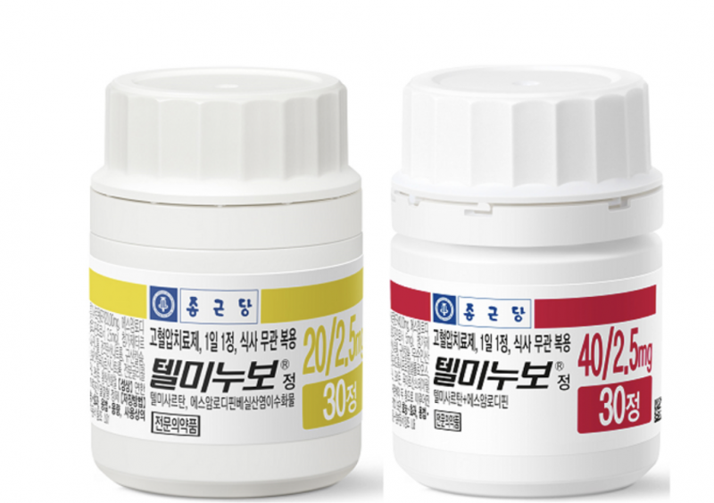 종근당은 지난 2013년 텔미누보40/2.5mg 40/5mg, 80/2.5mg 3개 용량을 허가받았다. 이어 2015년 고용량인 80/5mg 품목을, 2024년에는 20/2.5mg 용량을 추가해서 총 5개 용량을 보유하고 있다.