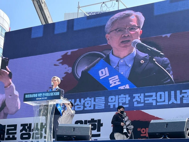 의과대학 증원이 3058명으로 동결된 상황에서 열린 이날 궐기대회에는 의대생, 전공의, 개원의, 교수 등 협회 추산 2만명이 참석했다.