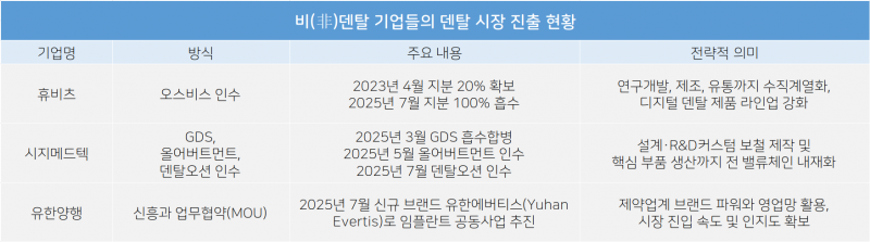 전문가들은 이번 사례가 치과산업 전반의 구조적 변화를 보여준다고 분석한다. 기존 덴탈 전문기업들이 주도하던 시장에 비덴탈 기업들이 적극 진입하면서 경쟁 구도가 다변화되고 있기 때문이다.