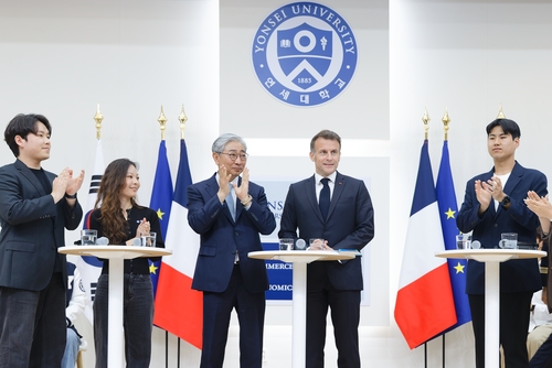 윤동섭 연세대 총장 참석도 이번 일정의 의미를 넓히는 대목이다. 마크롱 대통령은 오찬 직후 연세대에서 열린 특별강연에 윤 총장과 함께 참석했다. 학생 간담회 현장에도 함께했다.