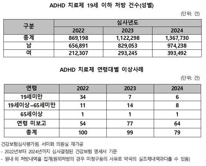 서미화 의원은 “ADHD 치료에 대한 인식이 개선되는 것은 긍정적이지만 처방이 늘어나는 만큼 필요한 환자들이 안정적으로 치료받을 수 있는 환경 조성이 필요하다”며 “국민이 안전하게 처방받을 수 있도록 약물 관리 시스템을 강화해야 한다”고 밝혔다.