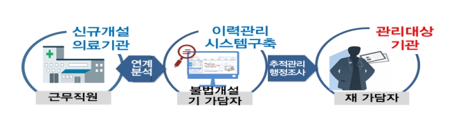 진입 차단을 위해 신규개설 의료기관에 대해 정기적 모니터링을 통한 감시기능이 강화된다.  이력관리 시스템이 구축된 3월부터 현재까지 총 2,255명이 등록됐다. 또 사회관계망(네트워크) 시스템을 개발, 시범운영 중에 있다.