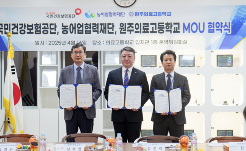 국민건강보험공단은 16일 농·어업협력재단 및 원주의료고등학교와 함께 농어촌 상생협력기금 출연 협약을 체결했다고 밝혔다.