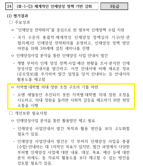 의대 증원이 포함된 '체계적인 인재양성 정책 기반 강화' 과제는 3등급을 받았다.