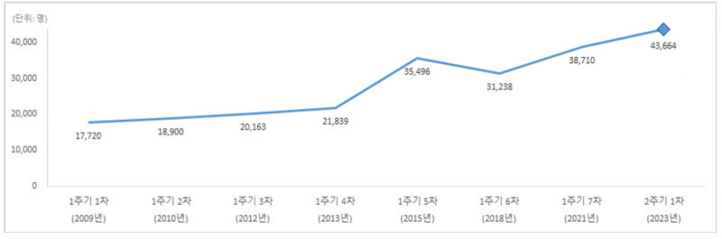 지난 2009년 1만7720명이던 혈액투석 환자는 2023년 4만3664명(146.4%)으로 총 2만5944명이 증가했다.