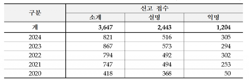 이 같은 증가세는 모바일 앱 신고채널 확대 등 방법 다양화로 신고인의 접근성을 높인 점과 제도의 지속적인 홍보 등이 영향을 미친 것으로 보인다.