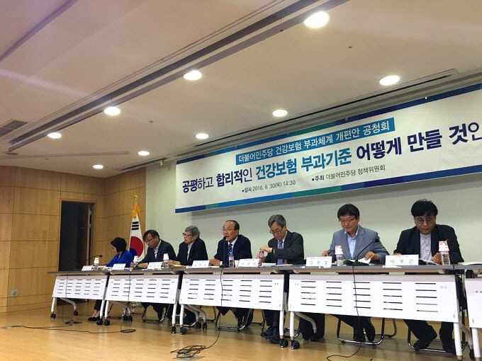 더불어민주당 정책위원회는 30일 국회 의원회관에서 ‘공평하고 합리적인 건강보험 부과기준 어떻게 만들 것인가’라는 주제의 건강보험 부가체계 개편안 공청회를 개최했다.