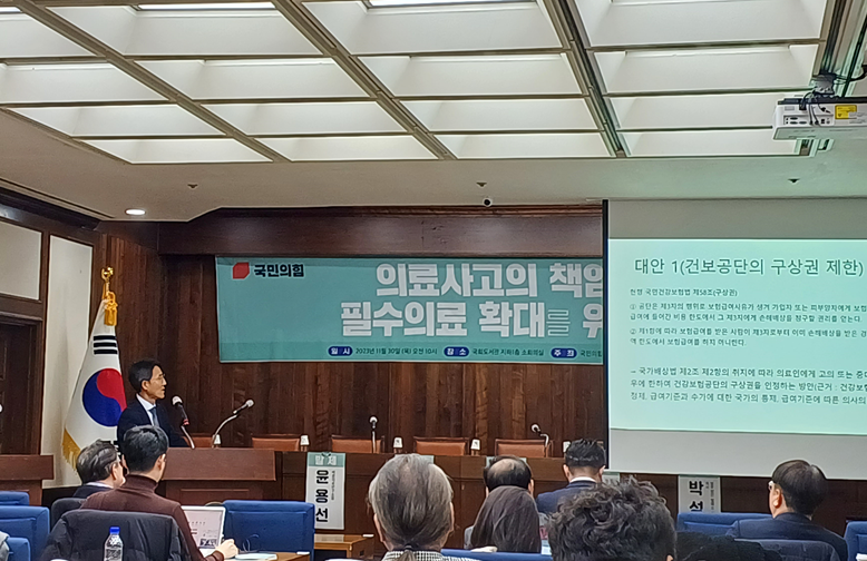 현 변호사는 이외에도 ▲국민건강보험공단 구상권 제한 ▲불가항력 의료사고 보상을 분만 이외 분야로 확대하는 방안 ▲의약품 부작용 피해구제사업에 의료사고도 포함시키는 방안 등을 아이디어로 제시했다.