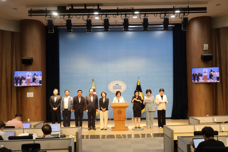 이날 보건복지위원회 민주당 의원들은 기자회견을 열고 "윤석열 정부 무능과 독선이 만든 의료대란, 민생파탄으로 국민 고통이 크다. 하루빨리 산적한 과제를 해결해야 한다"며 폭우·폭염 피해 국민 지원, 의료대란, 전국보건의료산업노동조합 총파업 등을 꼽았다.