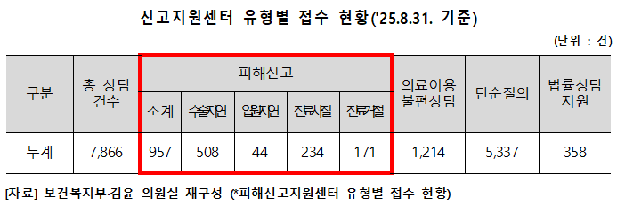 나머지 피해신고는 행정·의료적 조치 없이 종결되거나, 의료기관에 공문 발송·민원 전달 수준의 형식적 조치에 그친 것으로 확인됐다.