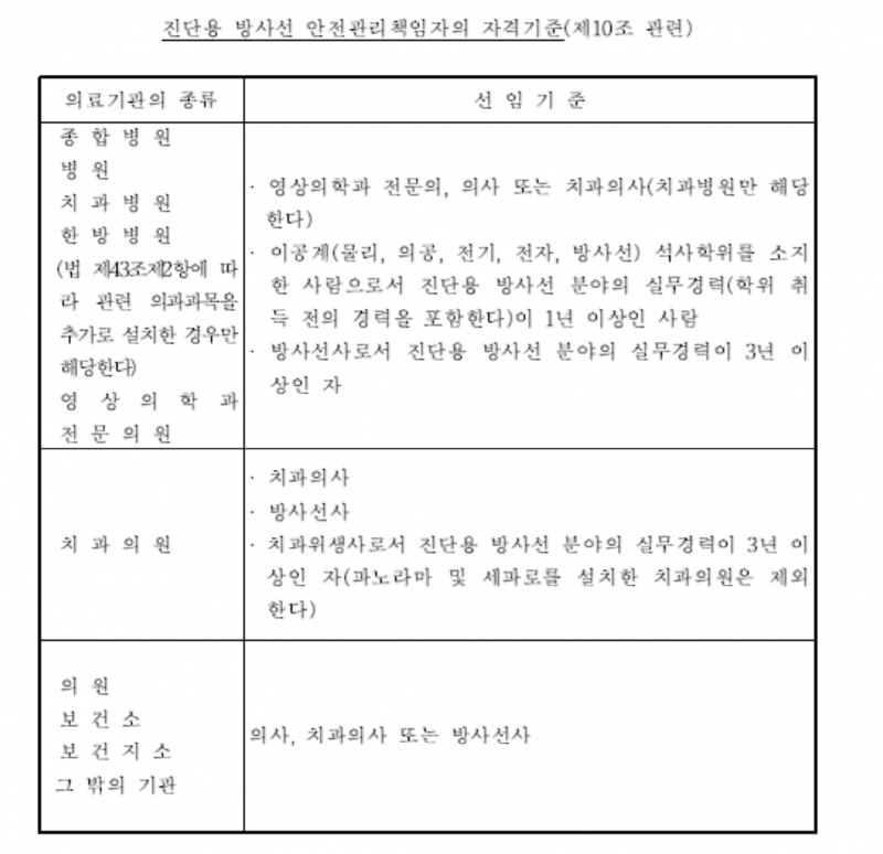 특히 이번 개정안은 보건복지부령으로 위임돼 있던 ‘진단용 방사선 안전관리책임자 자격 기준’에 한의사와 한의원이 누락된 점을 시정코자 하는 취지다.