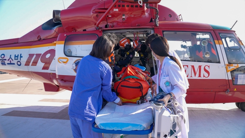 익수자 이송 소식을 전달받은 이대서울병원에서는 헬기가 도착하기 전 응급실 의료진이 환자이송과 치료를 위한 준비를 마치고 대기했다.