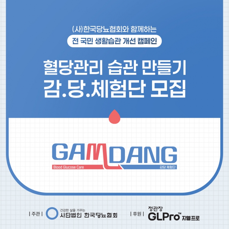 한국당뇨협회(회장 김광원 가천대길병원 교수)은 "전 국민 생활습관 개선을 통한 혈당건강 관리 캠페인 ‘감당체험단’을 모집한다"고 6일 밝혔다.