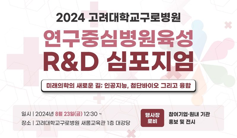 고려대학교 구로병원(병원장 정희진)은 오는 8월 23일 새롬교육관 대강당에서 ‘2024 연구중심병원육성R&D 심포지엄’을 개최한다.