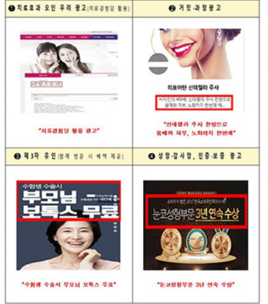 불법 의료광고로 의심된 사례는 ‘교통사고 치료 시 본인부담금 0원’, ‘ 부작용 없는 한방 다이어트 성형’ 등이 주를 이뤘다.
