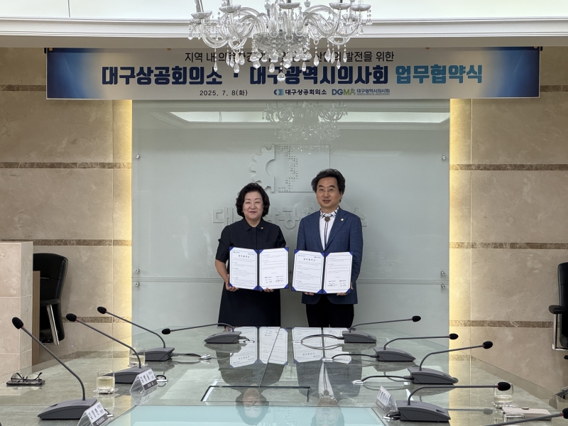 대구광역시의사회는 대구상공회의소는 지난 8일 대구상공회의소에서 두 기관의 발전과 지역 내 보건의료환경 개선 및 관련 산업 발전을 위한 업무협약을 체결했다고 9일 밝혔다.