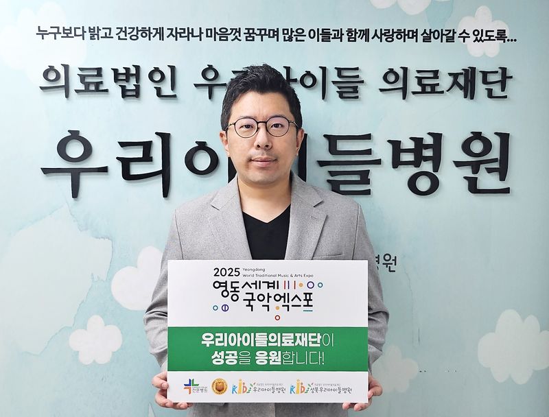 우리아이들의료재단 정성관 이사장이 26일 ‘2025 영동세계국악엑스포’의 성공적 개최를 기원하는 릴레이 응원 챌린지에 동참했다.