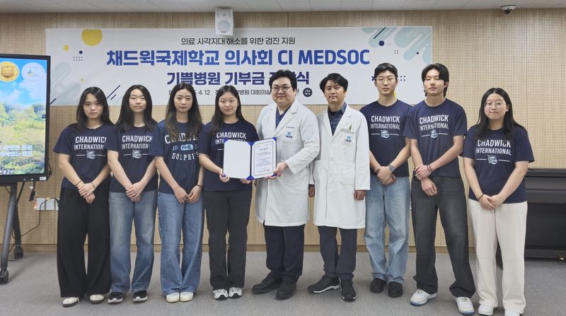 채드윅국제학교 의사회(CI Medical Society, 이하 CI Medsoc) 학생들이 최근 기쁨병원을 방문해 기부금 전달식을 가졌다.