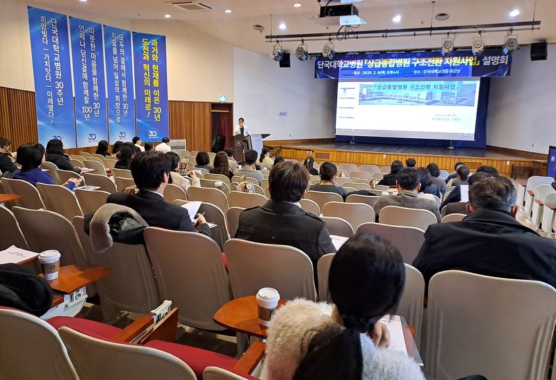 상급종합병원 구조전환 지원사업에 참여 중인 단국대병원(병원장 김재일)이 최근 병원 대강당에서 진료협력병원 관계자를 대상으로 네트워크 강화를 위한 설명회를 개최했다.