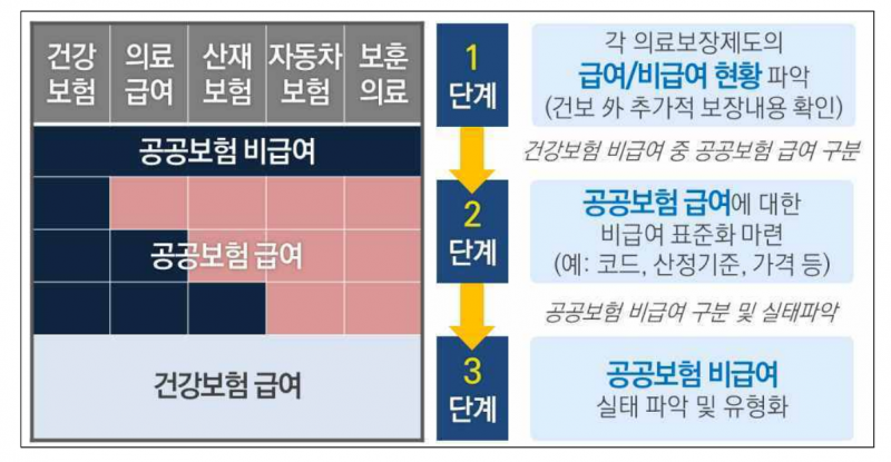 장기적으로는 각 의료보장제도의 비급여 현황을 공유하고 관리 과제를 통합적으로 추진한다.