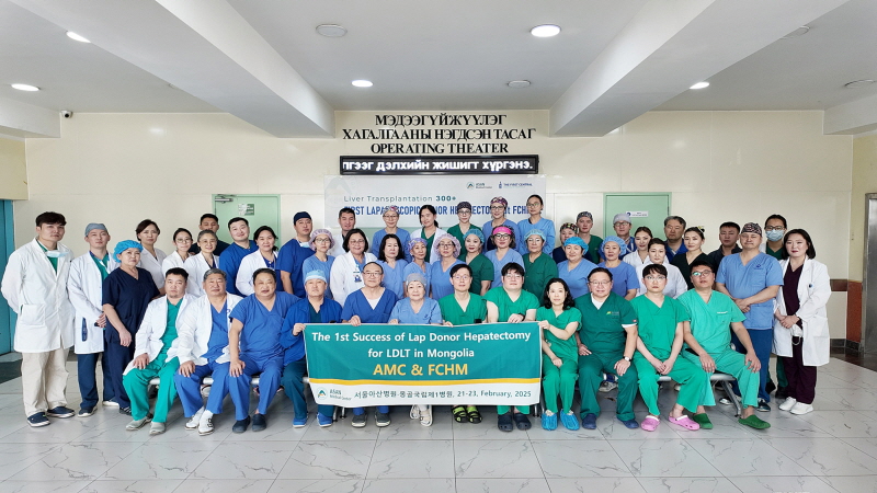 몽골국립제1병원이 생체간이식 300례를 달성하며 안정적인 수술체계를 갖추게 됐지만, 기증자 간을 복강경으로 절제한 경험이 없어 서울아산병원에 도움을 요청했다.