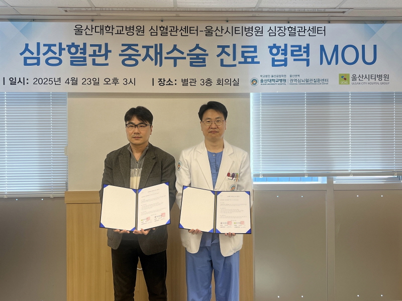 울산대병원은 지난 23일 울산시티병원과 심장 및 혈관 중재시술 분야 진료협력을 위한 협약을 체결했다고 밝혔다.