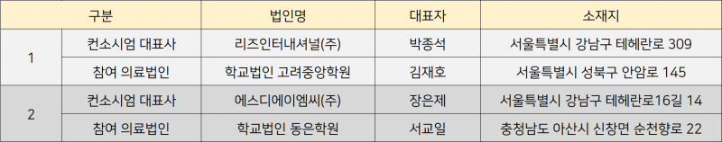 이 중 고려대의료원은 리즈인터내셔널 컨소시엄에 순천향대의료원은 에스디에이엠씨 컨소시엄에 참여하고 있다.