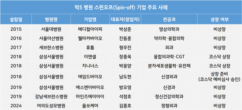 서울대병원을 포함 소위 빅5 병원에서 배출된 스핀오프와 교원창업 기업들이 잇따라 자본시장 진입에 속도를 내고 있다.