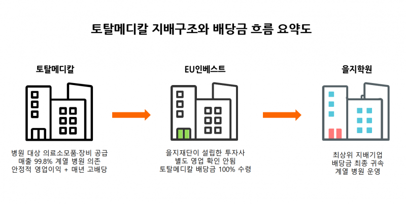 최상위 지배기업이 을지학원이라는 점을 고려하면 토탈메디칼이 창출한 이익은 대부분 재단으로 귀속되는 구조를 보인다.