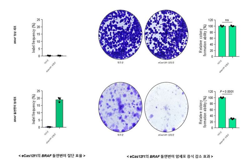 더욱이 피부암 세포주의 BRAF 유전자 돌연변이를 표적으로 삼아 정상 세포에는 영향을 주지 않고, 암세포에서만 유전자 절단을 유도했다.