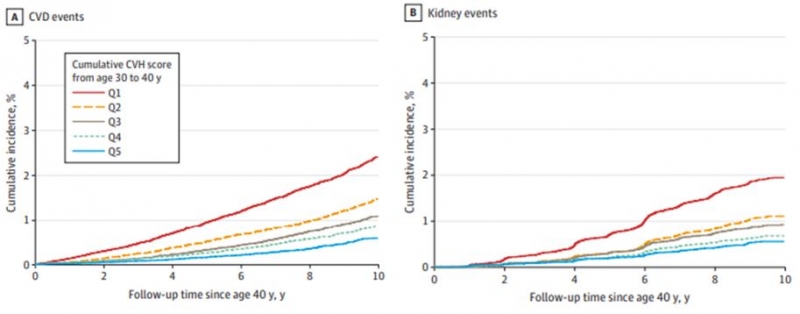 이후 30세부터 40세까지 10년 동안의 누적 심혈관 건강 점수를 산출해 5개 그룹으로 나누고, 평균 9.2년간 추적 관찰을 진행했다.