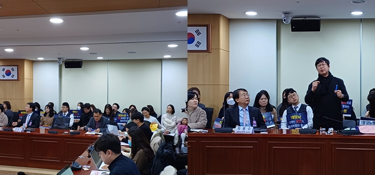 이날 토론회장 방청석, 복도, 입구를 ‘1형 당뇨병 치료를 개인에게만 맡기지 말라’는 피켓을 든 환자와 가족들이 가득 메우며 뜨거운 염원을 호소했다.