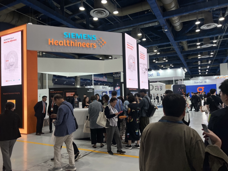 지멘스 헬시니어스도 프리미엄 MRI ‘마그네톰 시마 엑스(MAGNETOM Cima.X)’와 광자 계수 CT ‘네오톰 알파(NAEOTOM Alpha)’를 중심으로 전시를 구성했다.
