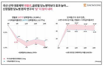 대웅제약 관계자는 “국내 많은 당뇨병 환자들이 새로운 약을 처방받아야 하는 상황에서 시의적절하게 임상 근거를 제공해 의미가 크다”며 “엔블로가 대안이 될 수 있는 추가 근거를 확보할 계획”이라고 밝혔다.
