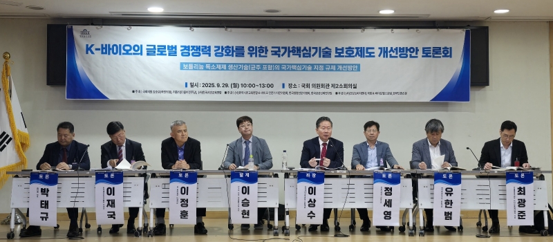 강승규·허종식 의원과 한국시민교육연합 주최로 지난 29일 국회 의원회관 제2소회의실에서 K-바이오 글로벌 경쟁력 강화를 위한 국가 핵심 기술 보호제도 개선 방안 토론회가 개최됐다.
