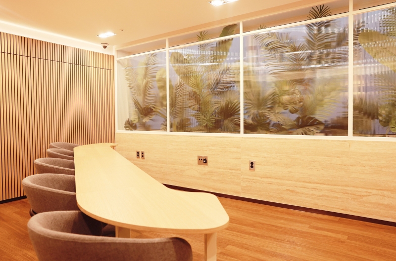아늑한 보호자 대기 공간에는 나무작품으로 알려진 자폐스펙트럼장애 미술작가 이규재 작품도 전시된다.