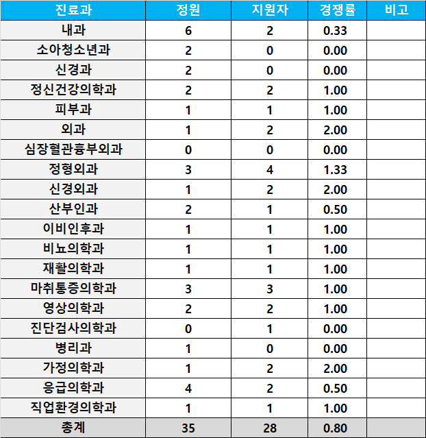 [2026년 상반기 레지던트 모집 지원현황] 한양대병원