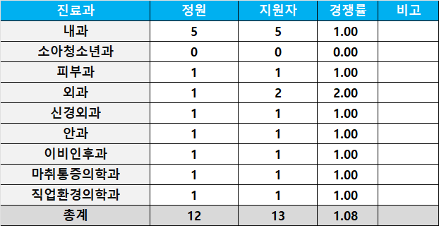 [2026년 상반기 레지던트 모집 지원현황] 한양대구리병원