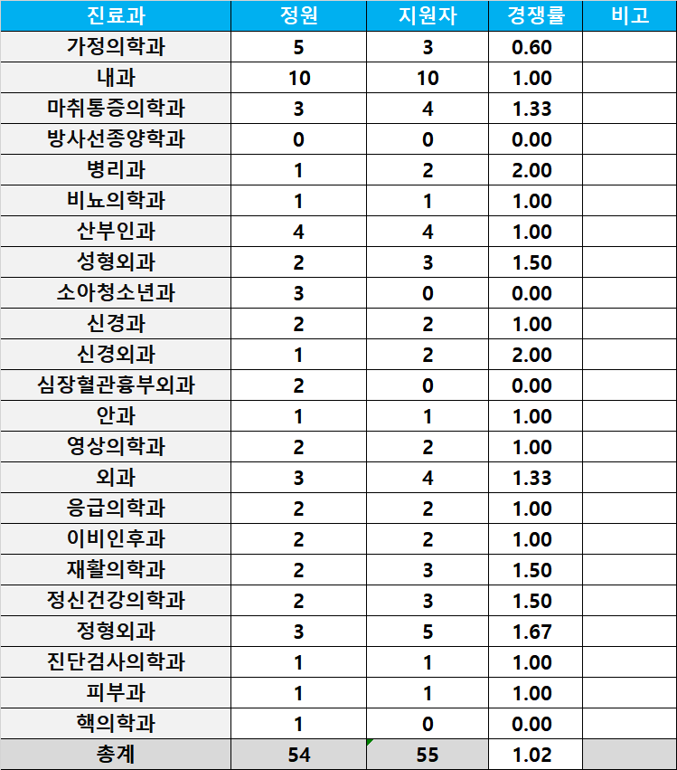[2024년도 상반기 레지던트 지원현황] 고려대학교 안암병원