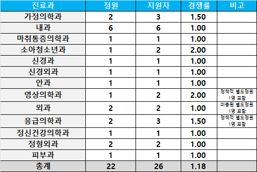[2024년도 상반기 레지던트 지원현황] 한림대강동성심병원
